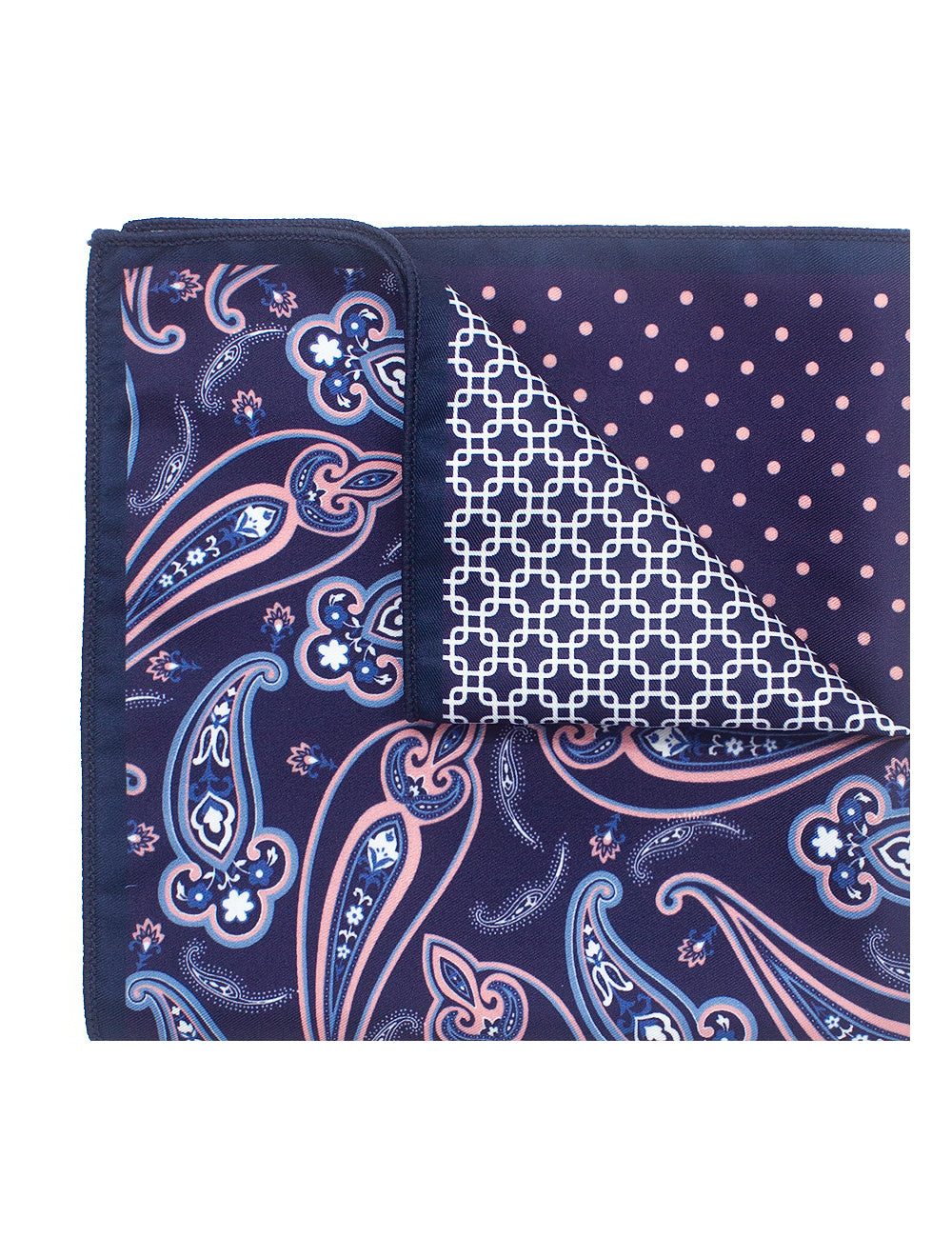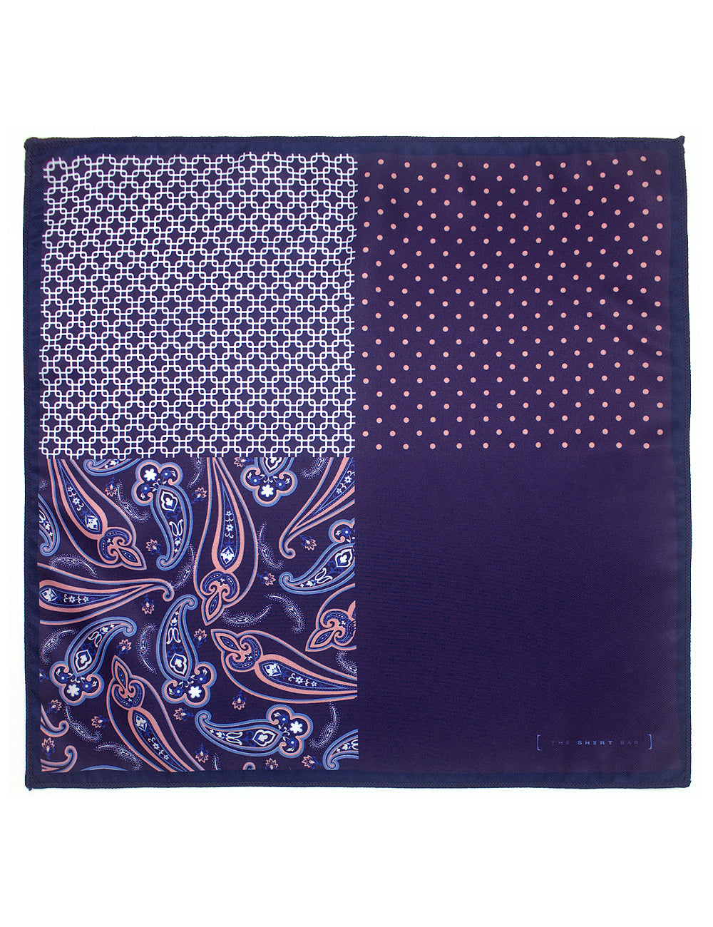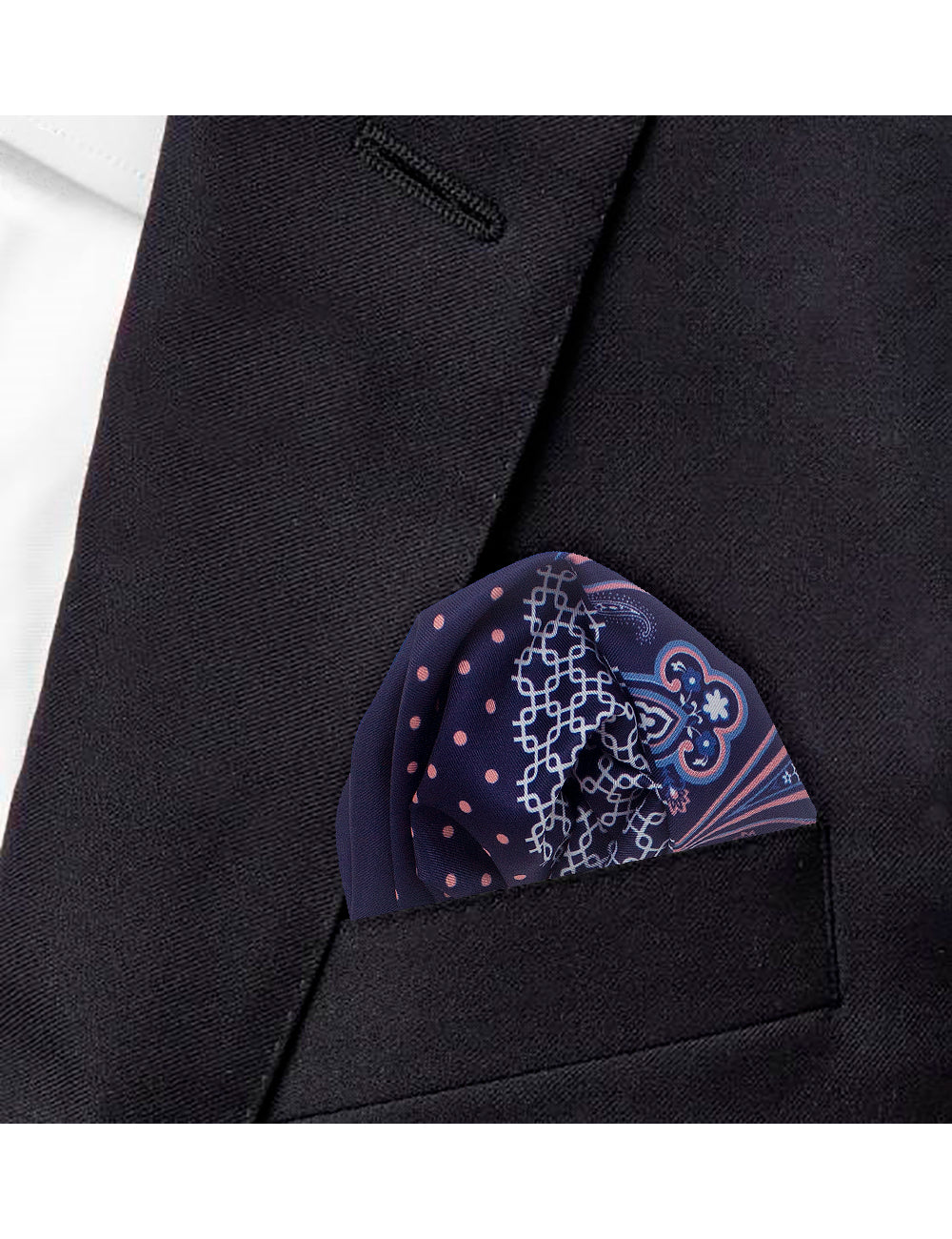 4-IN-1 NAVY BLUE AND PINK PRINT WOVEN POCKET SQUARE
