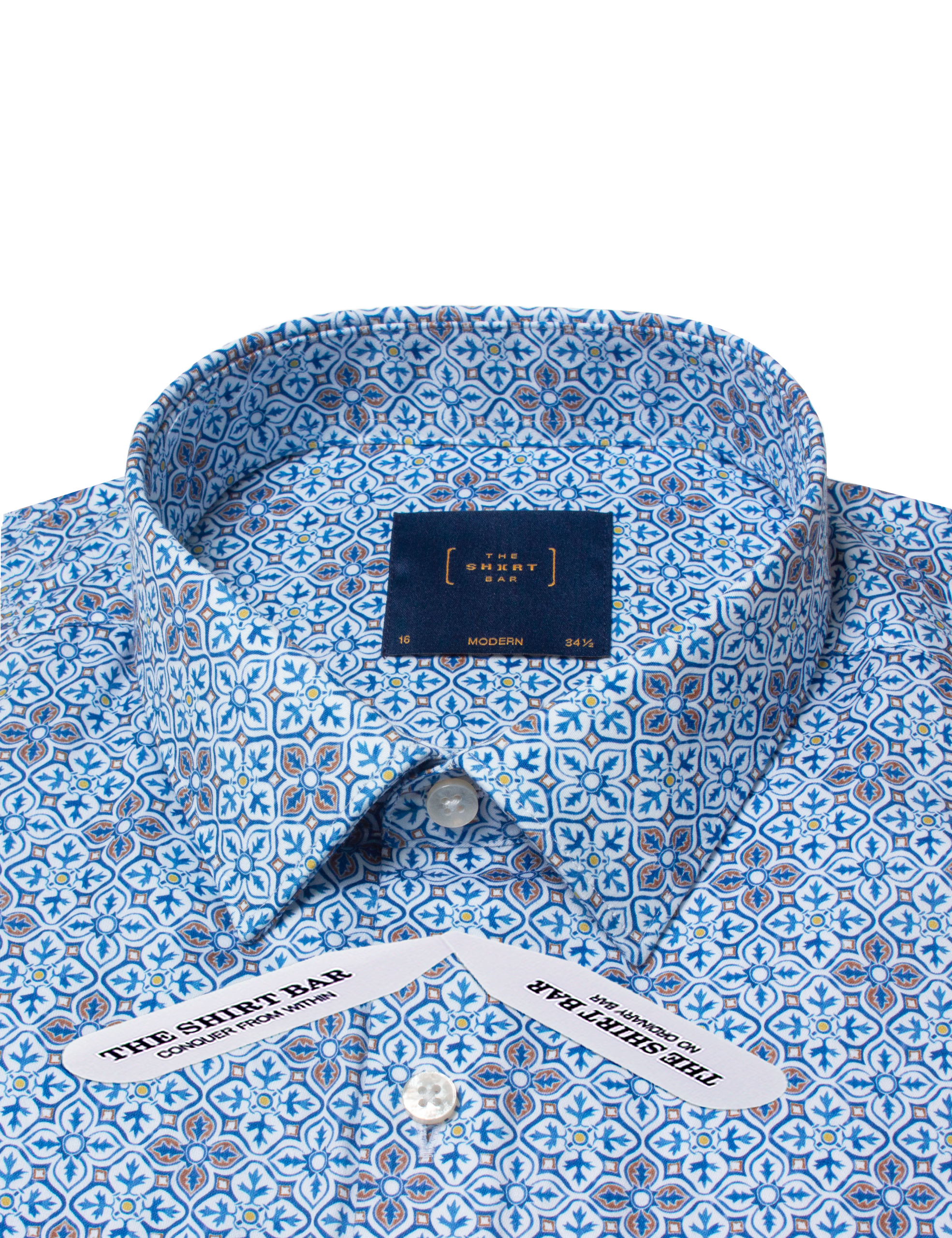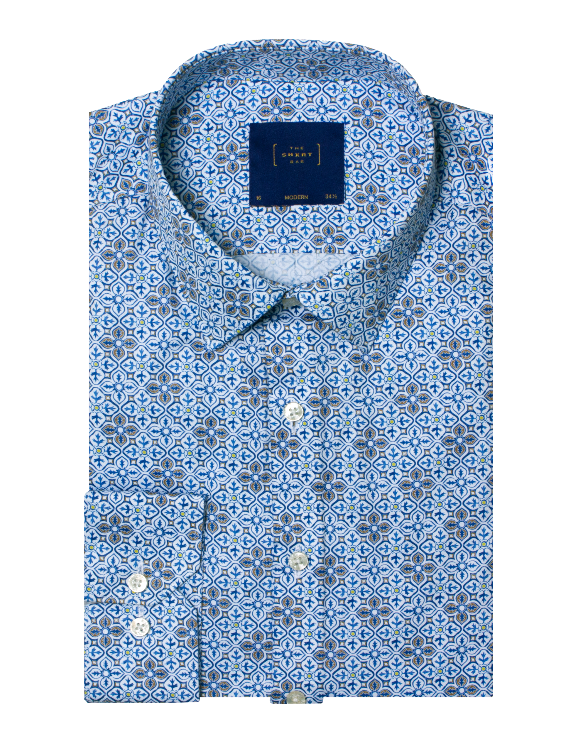 BLUE DAMASK FLORAL PRINT SILKY FINISH MODERN FIT SHIRT