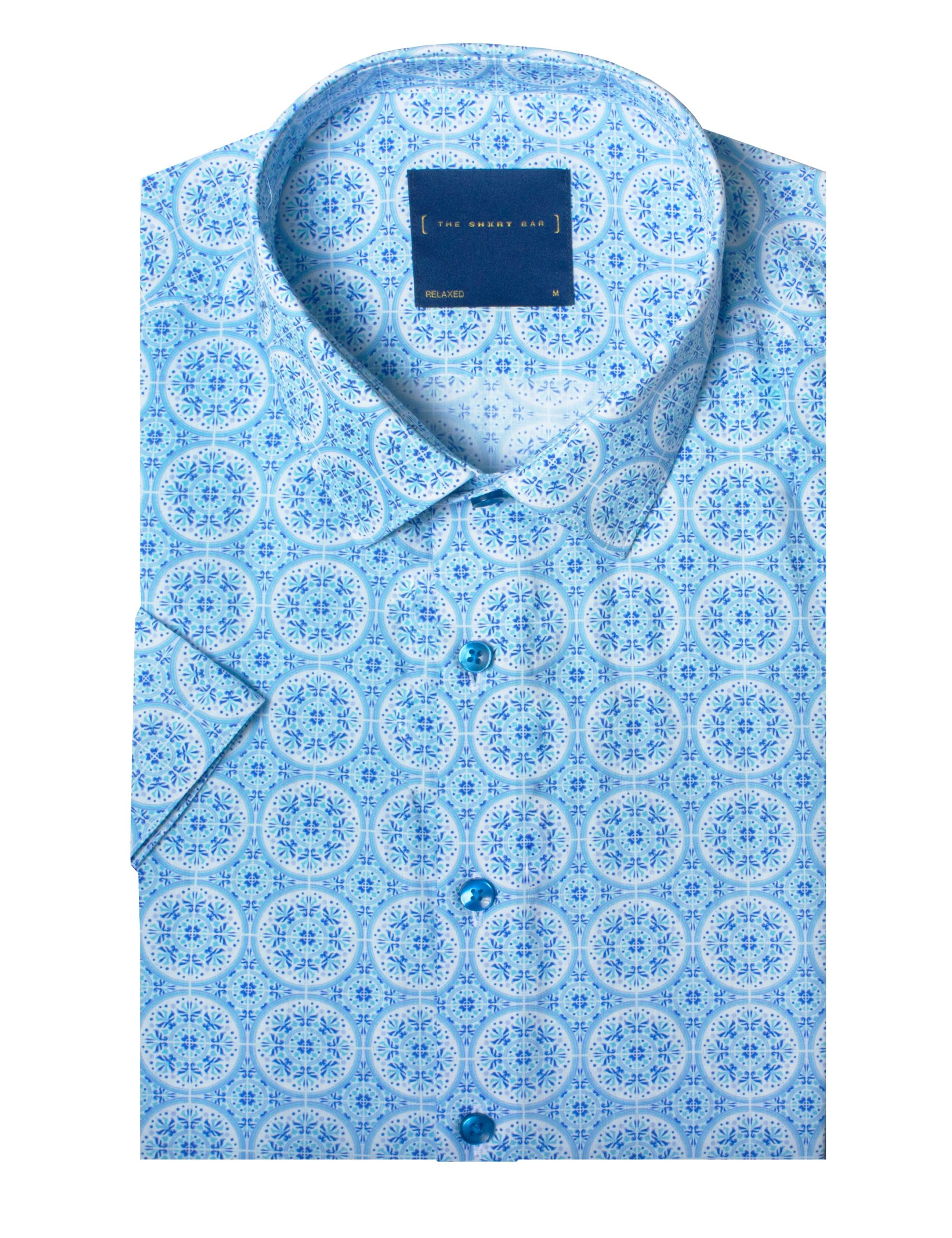 BLUE PERANAKAN PRINT RELAXED FIT SHORT SLEEVE SHIRT