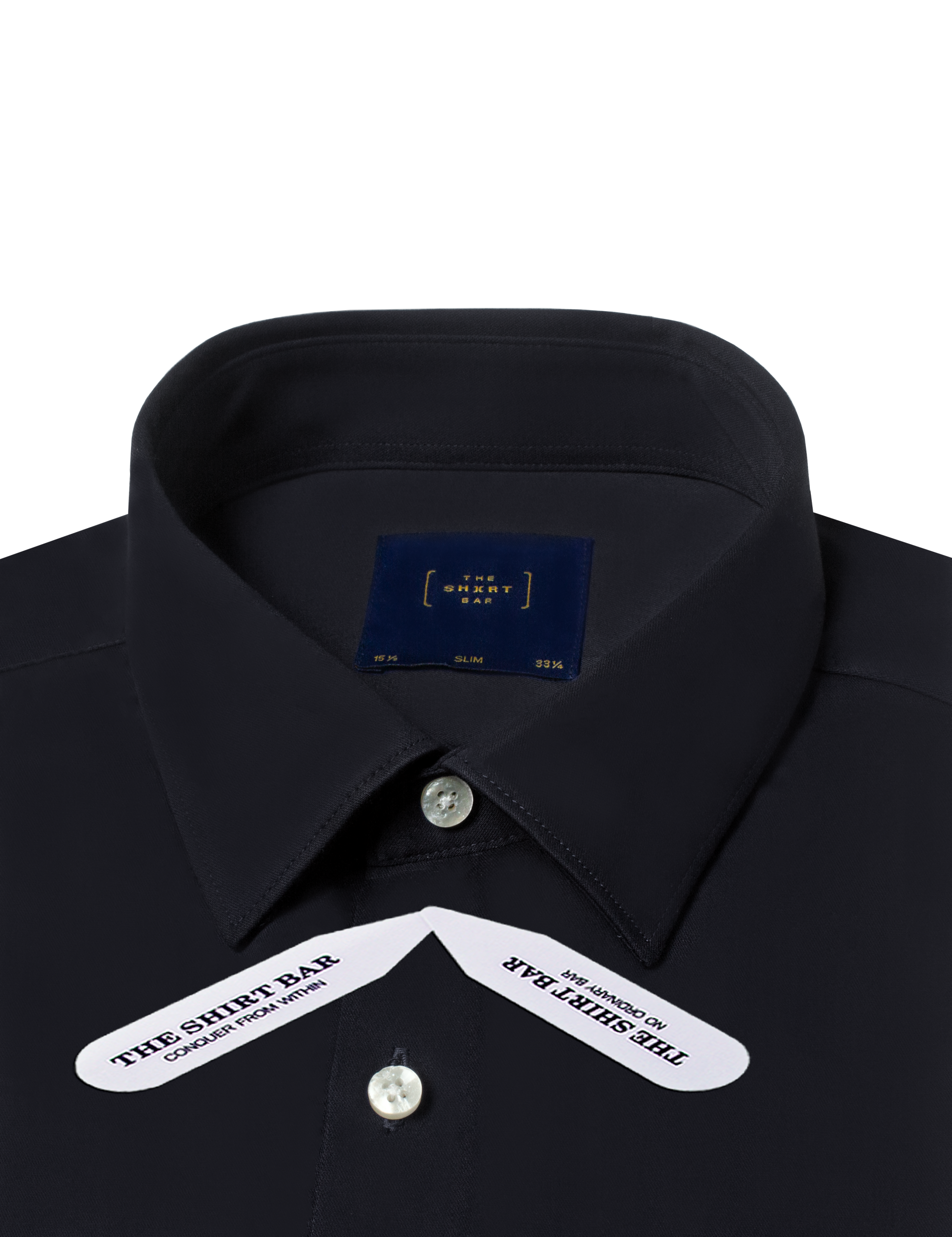 A sophisticated wardrobe essential in timeless black. Crafted from sustainable Eco-ol Bamboo blend with a silky-soft finish, this slim fit shirt combines modern elegance with environmental responsibility — ideal for the discerning professional who demands impeccable style and uncompromising comfort.